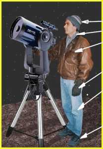Ten en cuenta que la observación se hace al aire libre y dura unas dos horas y que la temperatura al final de la misma, suele estar entre los 5 y los 10 grados centígrados, dependiendo de la época del año. Lo que pretendemos con estas recomendaciones es que estés confortable y no te moleste el frío.